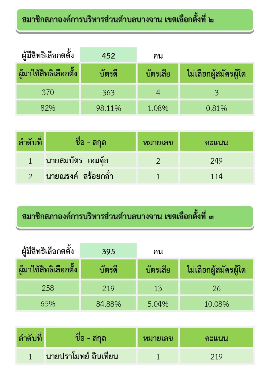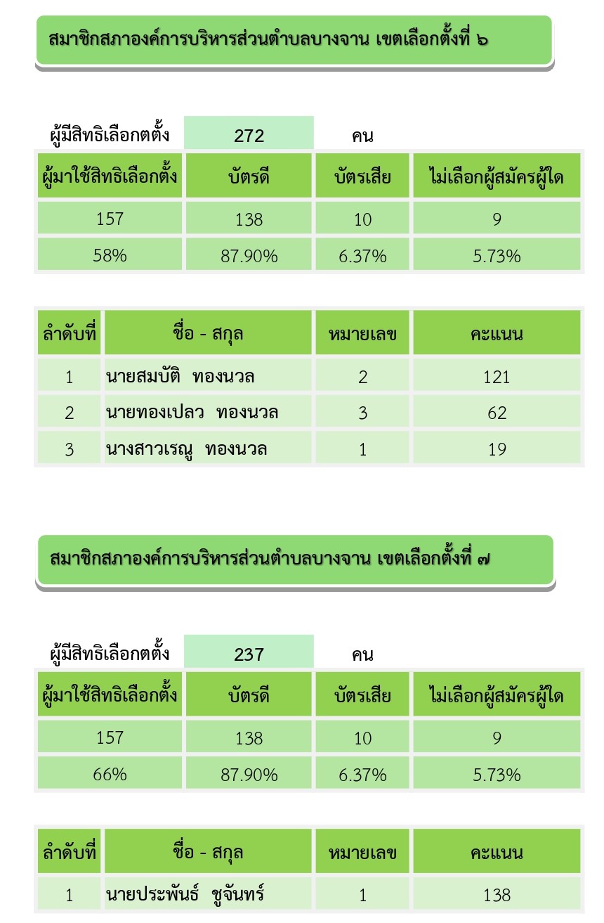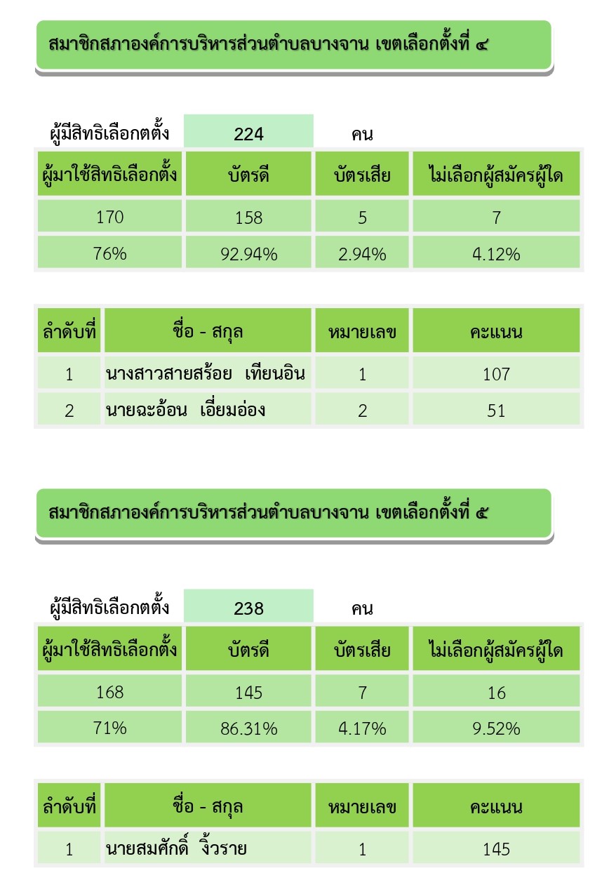 ผลการนับคะแนนเลือกตั้งสมาชิกสภาองค์การบริหารส่วนตำบลบางจาน และนายกองค์การบริหารส่วนตำบลบางจาน วันอาทิตย์ ที่ 11 มกราคม 2569 (อย่างไม่เป็นทางการ)